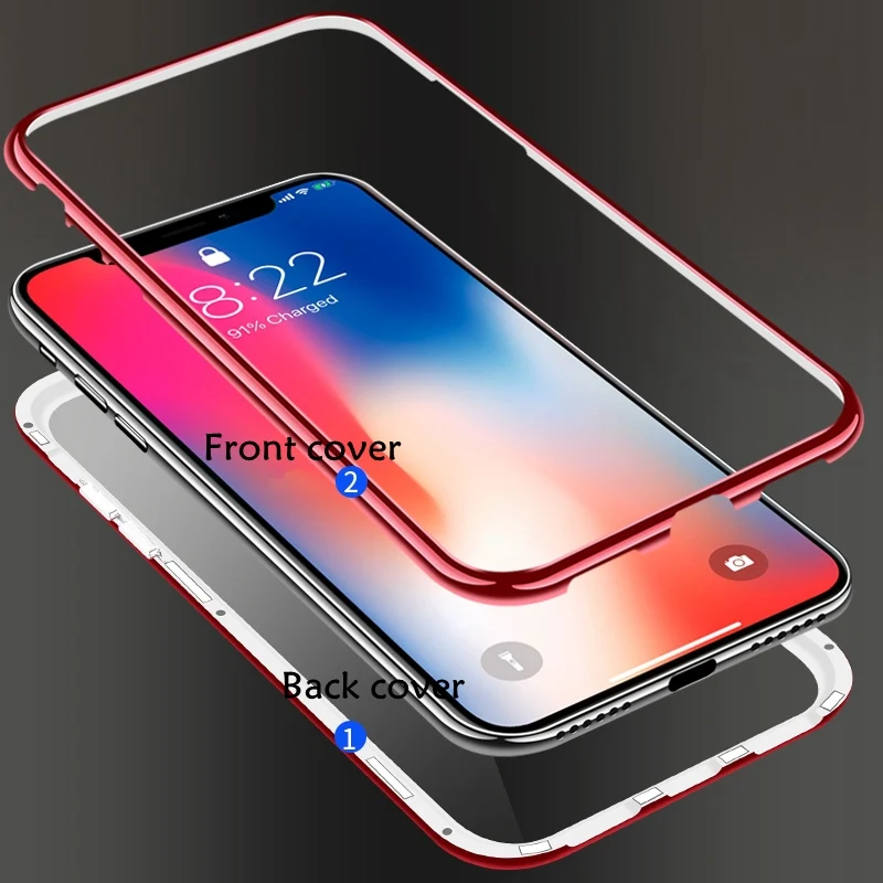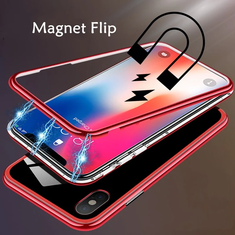 | 360 Full Magnetic Adsorption Phone Case For iPhone 8 7 Plus XS Max XR Clear Flip Glass Cover Coque For iPhone 6 6S Plus X Cases |