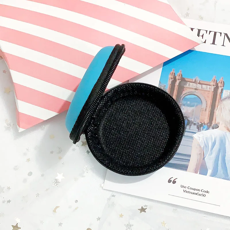 | Creative blue headphone cable USB data cable storage box earplug box eva coin purse zipper PU headset storage bag |